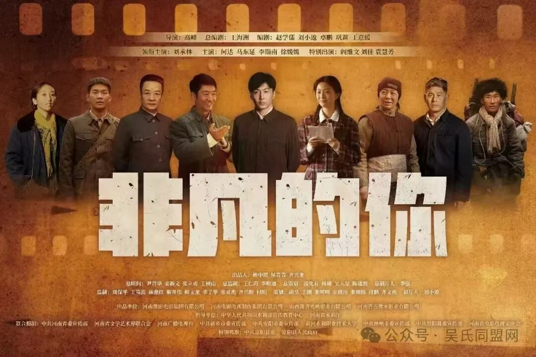 二零二五年十月十七日晚七点,《非凡的你》在河南省人民大会堂首映发布。《非凡的你》是一部反映林县红旗渠设计师吴祖太为原型的电影。红旗渠精神鼓舞着一代又一代人。吴祖太夫妇反映了责任与担当,敢吃苦,愿吃苦,为了引来漳河水献出年轻生命的时代楷模!